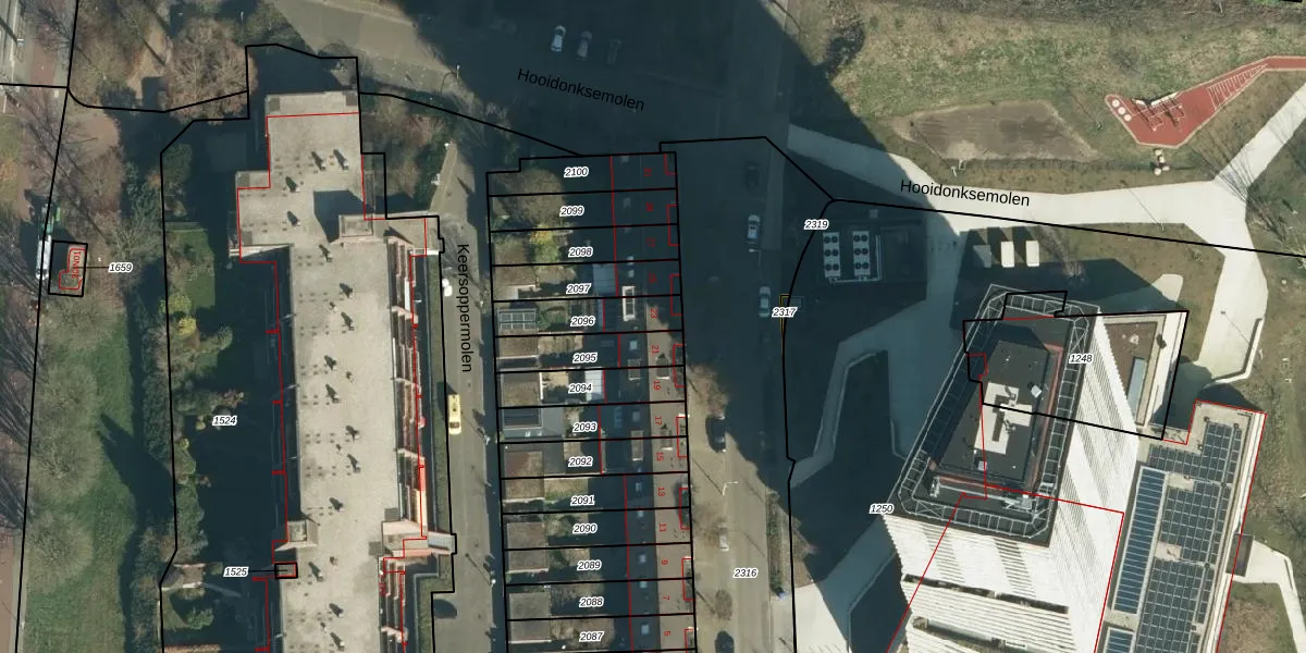 Gebruik de zoekbalk of klik op een perceel voor informatie over de adressen binnen dit perceel.
