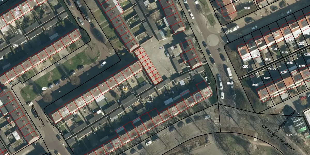 Het adres is gelegen op perceel 160 in de sectie P en de kadastrale gemeente Woensel. De kadastrale aanduiding is aldus WSL01-P-160. Het perceel is met 9395 m² relatief groot. Het gemiddelde ligt in de kadastrale gemeente Woensel op 1039,13 m². De grootste perceeloppervlakte in de kadastrale gemeente is 74,9 ha. De kleinste oppervlakte bedraagt 0 m². Er zijn 62 adressen aanwezig op het perceel. De huidige grenzen van het perceel zijn digitaal in de Basisregistratie Kadaster (BRK) geregistreerd op 12-04-2006.