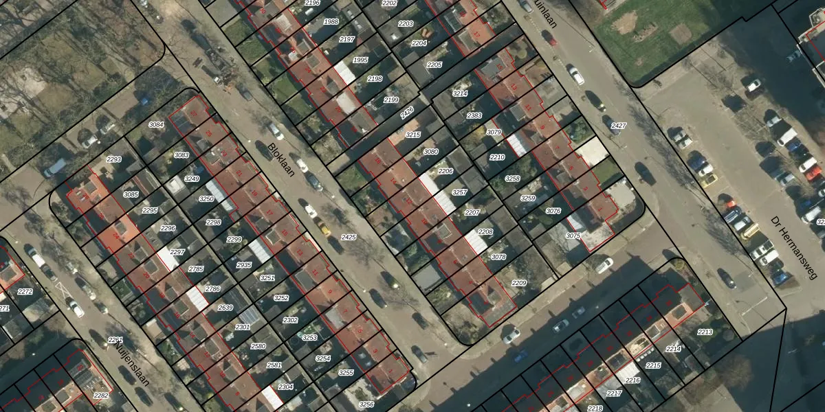 Gebruik de zoekbalk of klik op een perceel voor informatie over de adressen binnen dit perceel.