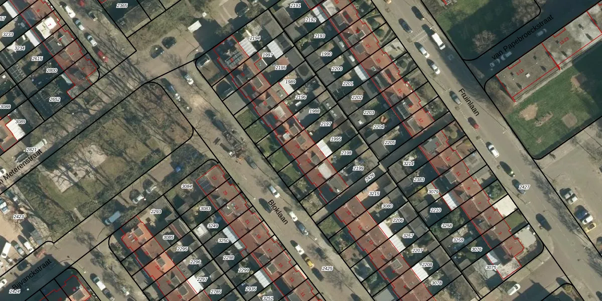 Gebruik de zoekbalk of klik op een perceel voor informatie over de adressen binnen dit perceel.