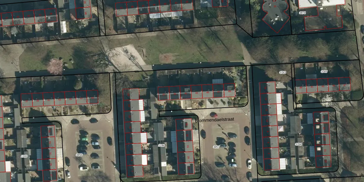 Het perceel waarop Blommendaelstraat 41 staat heeft een oppervlakte van 3254 m². Dit is een zeer groot perceel. De perceeloppervlakte wordt geregistreerd door het Kadaster. Gedetailleerde informatie over de maten van dit perceel kunt u vinden in het rapport Kadastrale kaart met maatvoering van Blommendaelstraat 41.