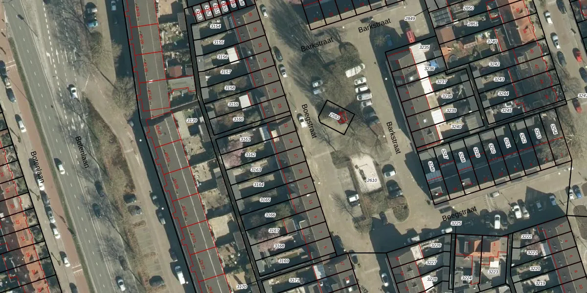 Boegstraat 19 is gelegen op kadastraal perceel STR03D3162. Deze kadastrale aanduiding is uniek en wordt gebruikt door het Kadaster om eigendomsrechten en andere zakelijke rechten vast te leggen. Het perceel maakt onderdeel uit van de kadastrale gemeente Strijp.
