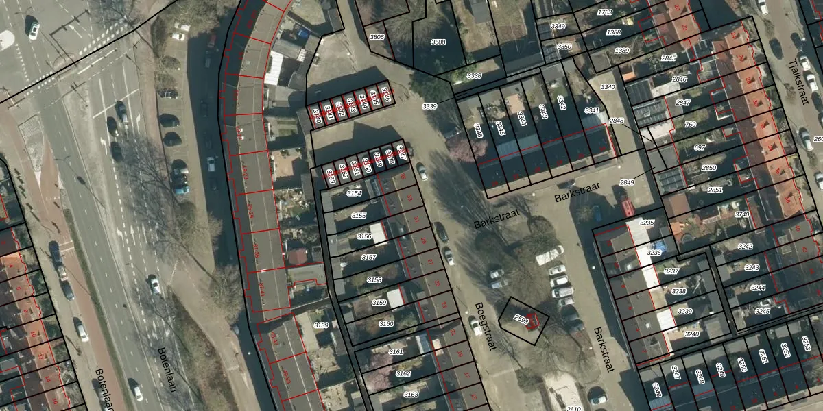 Boegstraat 33 is gelegen op kadastraal perceel STR03D3155. Deze kadastrale aanduiding is uniek en wordt gebruikt door het Kadaster om eigendomsrechten en andere zakelijke rechten vast te leggen. Het perceel maakt onderdeel uit van de kadastrale gemeente Strijp.