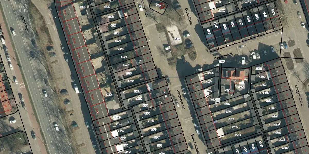 Gebruik de zoekbalk of klik op een perceel voor informatie over de adressen binnen dit perceel.