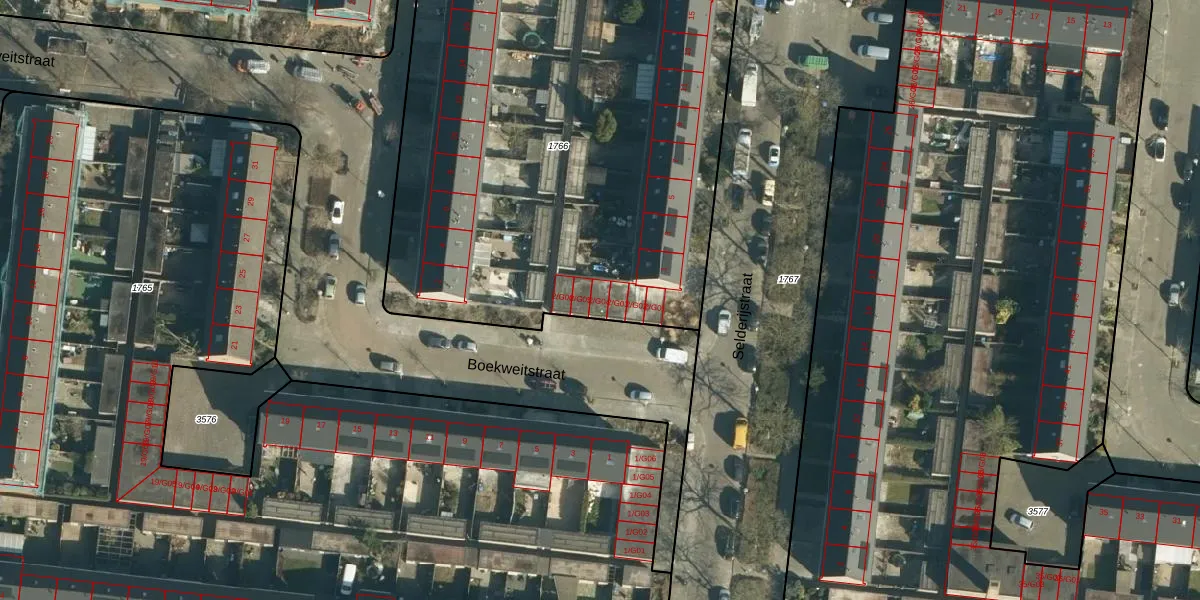 Boekweitstraat 2-G04 is gelegen op kadastraal perceel WSL01C1766. Deze kadastrale aanduiding is uniek en wordt gebruikt door het Kadaster om eigendomsrechten en andere zakelijke rechten vast te leggen. Het perceel maakt onderdeel uit van de kadastrale gemeente Woensel.