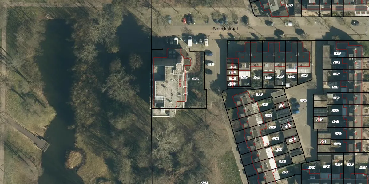 Het perceel waarop Bokrijkstraat 25 staat heeft een oppervlakte van 942 m². Dit is een groot perceel. De perceeloppervlakte wordt geregistreerd door het Kadaster. Gedetailleerde informatie over de maten van dit perceel kunt u vinden in het rapport Kadastrale kaart met maatvoering van Bokrijkstraat 25.