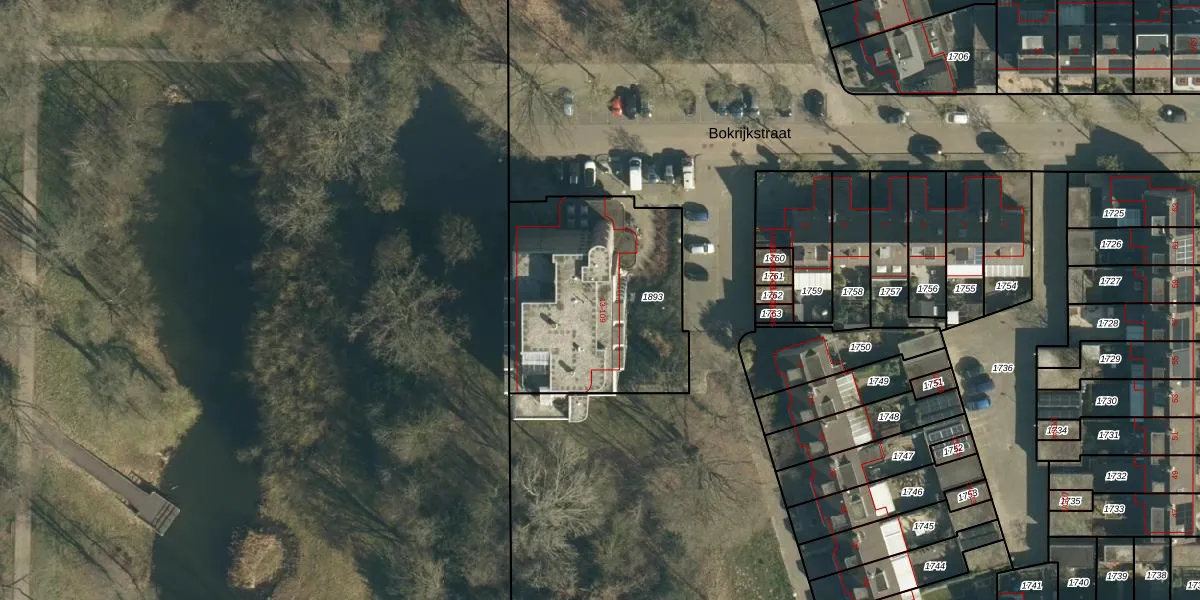 Het perceel waarop Bokrijkstraat 37 staat heeft een oppervlakte van 942 m². Dit is een groot perceel. De perceeloppervlakte wordt geregistreerd door het Kadaster. Gedetailleerde informatie over de maten van dit perceel kunt u vinden in het rapport Kadastrale kaart met maatvoering van Bokrijkstraat 37.