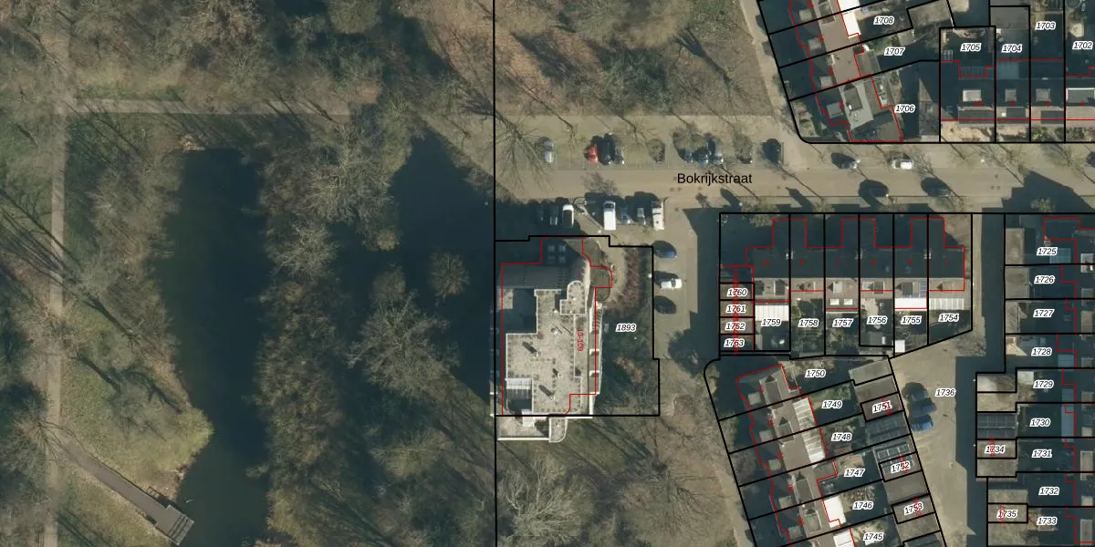 Het perceel waarop Bokrijkstraat 61 staat heeft een oppervlakte van 942 m². Dit is een groot perceel. De perceeloppervlakte wordt geregistreerd door het Kadaster. Gedetailleerde informatie over de maten van dit perceel kunt u vinden in het rapport Kadastrale kaart met maatvoering van Bokrijkstraat 61.