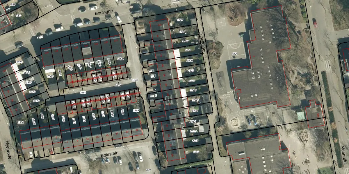 Gebruik de zoekbalk of klik op een perceel voor informatie over de adressen binnen dit perceel.