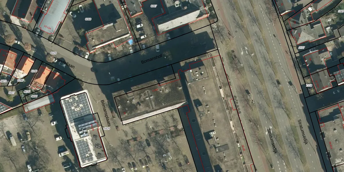 Bomanshof 213 is gelegen op kadastraal perceel STM00A5917. Deze kadastrale aanduiding is uniek en wordt gebruikt door het Kadaster om eigendomsrechten en andere zakelijke rechten vast te leggen. Het perceel maakt onderdeel uit van de kadastrale gemeente Stratum.