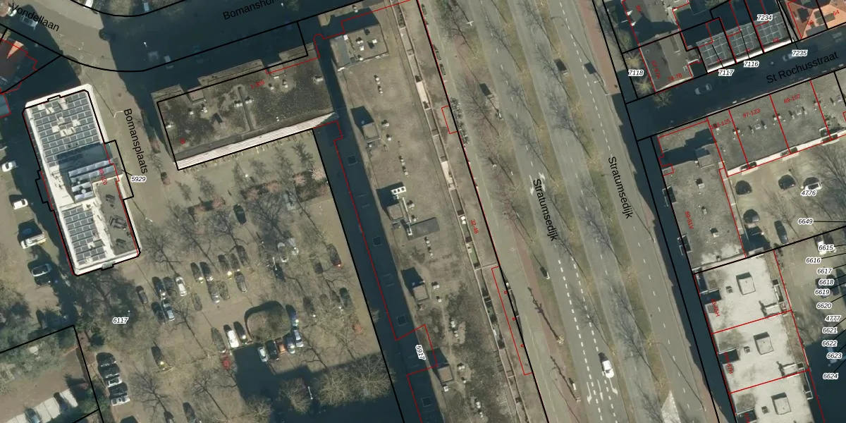 Bomanshof 217-F is gelegen op kadastraal perceel STM00A5917. Deze kadastrale aanduiding is uniek en wordt gebruikt door het Kadaster om eigendomsrechten en andere zakelijke rechten vast te leggen. Het perceel maakt onderdeel uit van de kadastrale gemeente Stratum.