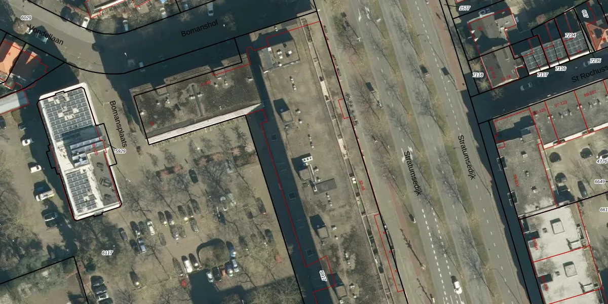 Bomanshof 297 is gelegen op kadastraal perceel STM00A5917. Deze kadastrale aanduiding is uniek en wordt gebruikt door het Kadaster om eigendomsrechten en andere zakelijke rechten vast te leggen. Het perceel maakt onderdeel uit van de kadastrale gemeente Stratum.