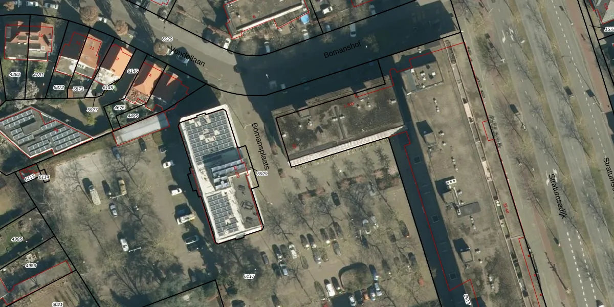 Bomanshof 43 is gelegen op kadastraal perceel STM00A5917. Deze kadastrale aanduiding is uniek en wordt gebruikt door het Kadaster om eigendomsrechten en andere zakelijke rechten vast te leggen. Het perceel maakt onderdeel uit van de kadastrale gemeente Stratum.