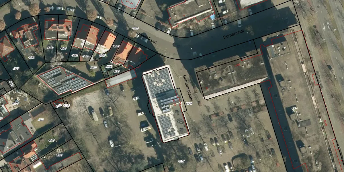 Het perceel waarop Bomansplaats 118 staat heeft een oppervlakte van 722 m². Dit is een groot perceel. De perceeloppervlakte wordt geregistreerd door het Kadaster. Gedetailleerde informatie over de maten van dit perceel kunt u vinden in het rapport Kadastrale kaart met maatvoering van Bomansplaats 118.