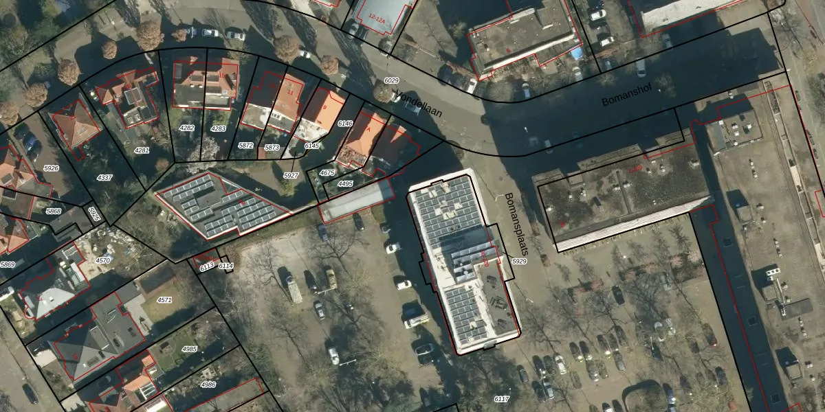 Het perceel waarop Bomansplaats 77 staat heeft een oppervlakte van 722 m². Dit is een groot perceel. De perceeloppervlakte wordt geregistreerd door het Kadaster. Gedetailleerde informatie over de maten van dit perceel kunt u vinden in het rapport Kadastrale kaart met maatvoering van Bomansplaats 77.