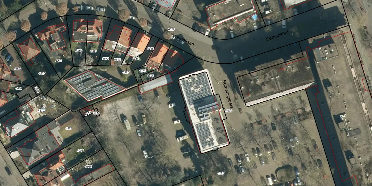 Het perceel waarop Bomansplaats 87 staat heeft een oppervlakte van 722 m². Dit is een groot perceel. De perceeloppervlakte wordt geregistreerd door het Kadaster. Gedetailleerde informatie over de maten van dit perceel kunt u vinden in het rapport Kadastrale kaart met maatvoering van Bomansplaats 87.