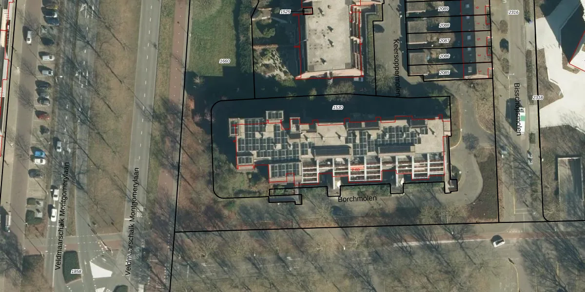 Het perceel waarop Borchmolen 20 staat heeft een oppervlakte van 2544 m². Dit is een zeer groot perceel. De perceeloppervlakte wordt geregistreerd door het Kadaster. Gedetailleerde informatie over de maten van dit perceel kunt u vinden in het rapport Kadastrale kaart met maatvoering van Borchmolen 20.