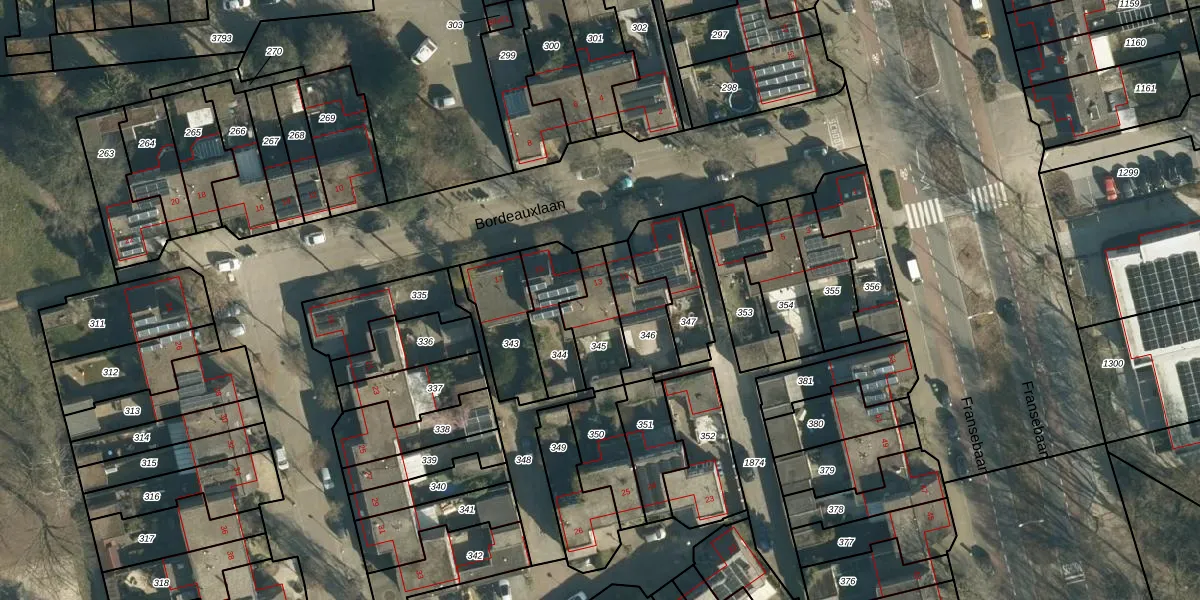 Het perceel waarop Bordeauxlaan 13 staat heeft een oppervlakte van 160 m². Dit is een middelgroot perceel. De perceeloppervlakte wordt geregistreerd door het Kadaster. Gedetailleerde informatie over de maten van dit perceel kunt u vinden in het rapport Kadastrale kaart met maatvoering van Bordeauxlaan 13.