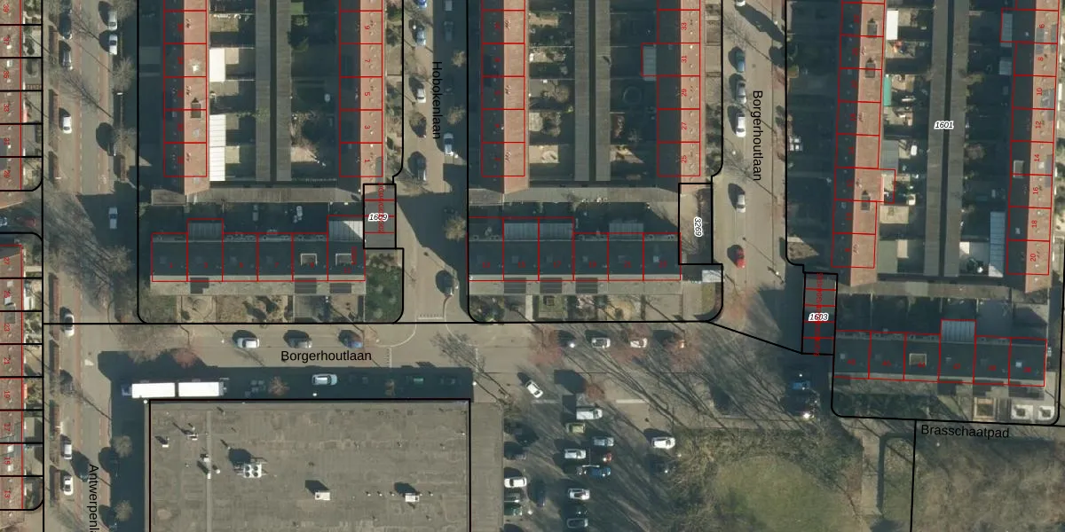Borgerhoutlaan 15 is gelegen op kadastraal perceel WSL01M1605. Deze kadastrale aanduiding is uniek en wordt gebruikt door het Kadaster om eigendomsrechten en andere zakelijke rechten vast te leggen. Het perceel maakt onderdeel uit van de kadastrale gemeente Woensel.