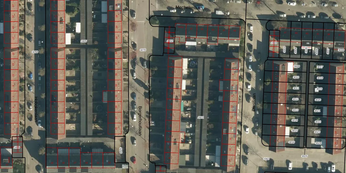 Borgerhoutlaan 22 is gelegen op kadastraal perceel WSL01M1601. Deze kadastrale aanduiding is uniek en wordt gebruikt door het Kadaster om eigendomsrechten en andere zakelijke rechten vast te leggen. Het perceel maakt onderdeel uit van de kadastrale gemeente Woensel.