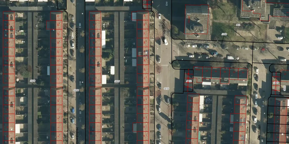 Borgerhoutlaan 43 is gelegen op kadastraal perceel WSL01M1605. Deze kadastrale aanduiding is uniek en wordt gebruikt door het Kadaster om eigendomsrechten en andere zakelijke rechten vast te leggen. Het perceel maakt onderdeel uit van de kadastrale gemeente Woensel.