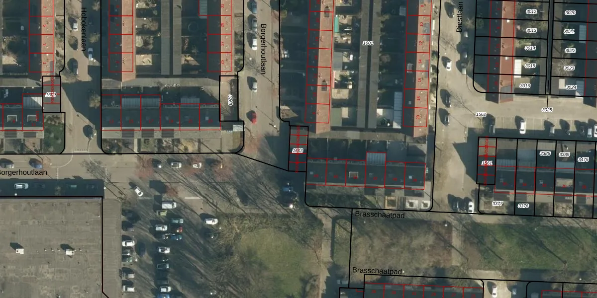 Borgerhoutlaan 6-G03 is gelegen op kadastraal perceel WSL01M1603. Deze kadastrale aanduiding is uniek en wordt gebruikt door het Kadaster om eigendomsrechten en andere zakelijke rechten vast te leggen. Het perceel maakt onderdeel uit van de kadastrale gemeente Woensel.
