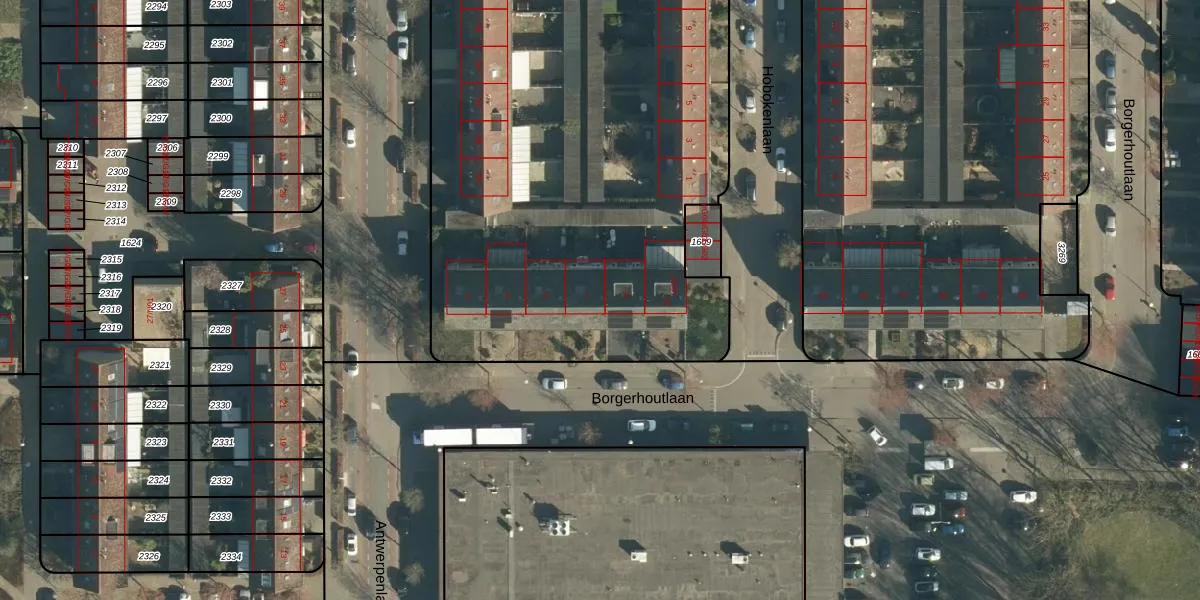 Borgerhoutlaan 7 is gelegen op kadastraal perceel WSL01M1608. Deze kadastrale aanduiding is uniek en wordt gebruikt door het Kadaster om eigendomsrechten en andere zakelijke rechten vast te leggen. Het perceel maakt onderdeel uit van de kadastrale gemeente Woensel.