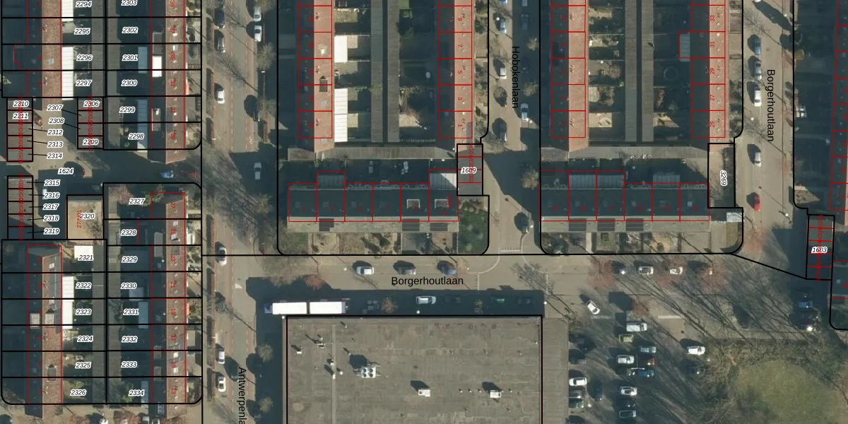 Borgerhoutlaan 9 is gelegen op kadastraal perceel WSL01M1608. Deze kadastrale aanduiding is uniek en wordt gebruikt door het Kadaster om eigendomsrechten en andere zakelijke rechten vast te leggen. Het perceel maakt onderdeel uit van de kadastrale gemeente Woensel.