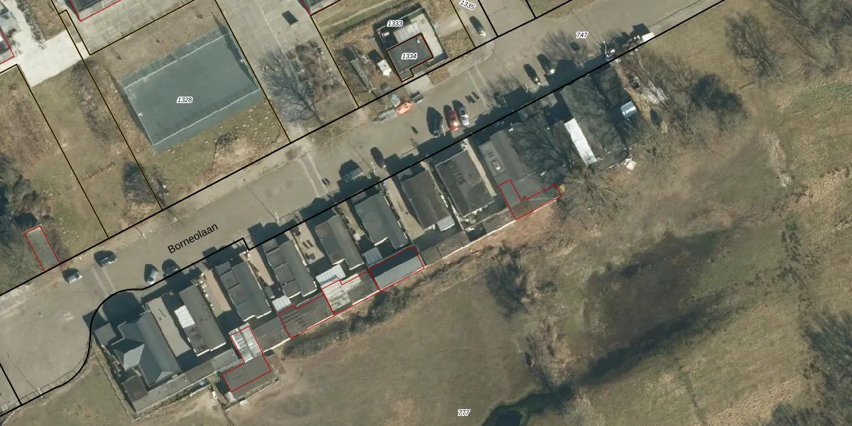 Het perceel waarop Borneolaan 10 staat heeft een oppervlakte van 2,6 ha. Dit is een zeer groot perceel. De perceeloppervlakte wordt geregistreerd door het Kadaster. Gedetailleerde informatie over de maten van dit perceel kunt u vinden in het rapport Kadastrale kaart met maatvoering van Borneolaan 10.