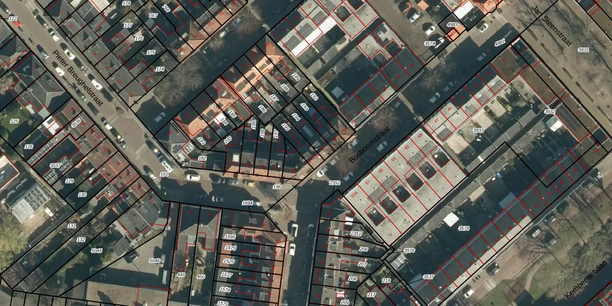 Bosboomstraat 62-A is gelegen op kadastraal perceel TGR00E195. Deze kadastrale aanduiding is uniek en wordt gebruikt door het Kadaster om eigendomsrechten en andere zakelijke rechten vast te leggen. Het perceel maakt onderdeel uit van de kadastrale gemeente Tongelre.