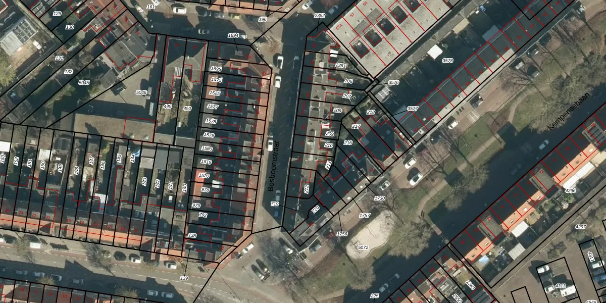 Bosboomstraat 71 is gelegen op kadastraal perceel TGR00E210. Deze kadastrale aanduiding is uniek en wordt gebruikt door het Kadaster om eigendomsrechten en andere zakelijke rechten vast te leggen. Het perceel maakt onderdeel uit van de kadastrale gemeente Tongelre.