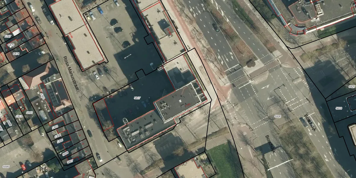 Het perceel waarop Boschdijk 17-H staat heeft een oppervlakte van 1967 m². Dit is een zeer groot perceel. De perceeloppervlakte wordt geregistreerd door het Kadaster. Gedetailleerde informatie over de maten van dit perceel kunt u vinden in het rapport Kadastrale kaart met maatvoering van Boschdijk 17-H.