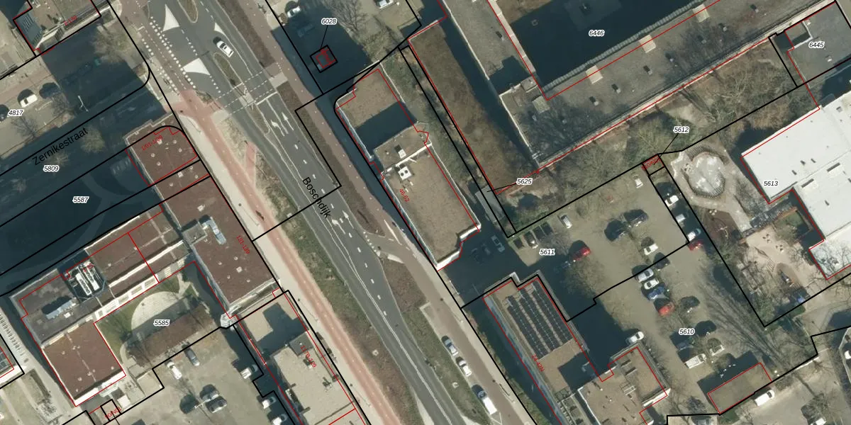 Het perceel waarop Boschdijk 46-56 staat heeft een oppervlakte van 1934 m². Dit is een zeer groot perceel. De perceeloppervlakte wordt geregistreerd door het Kadaster. Gedetailleerde informatie over de maten van dit perceel kunt u vinden in het rapport Kadastrale kaart met maatvoering van Boschdijk 46-56.