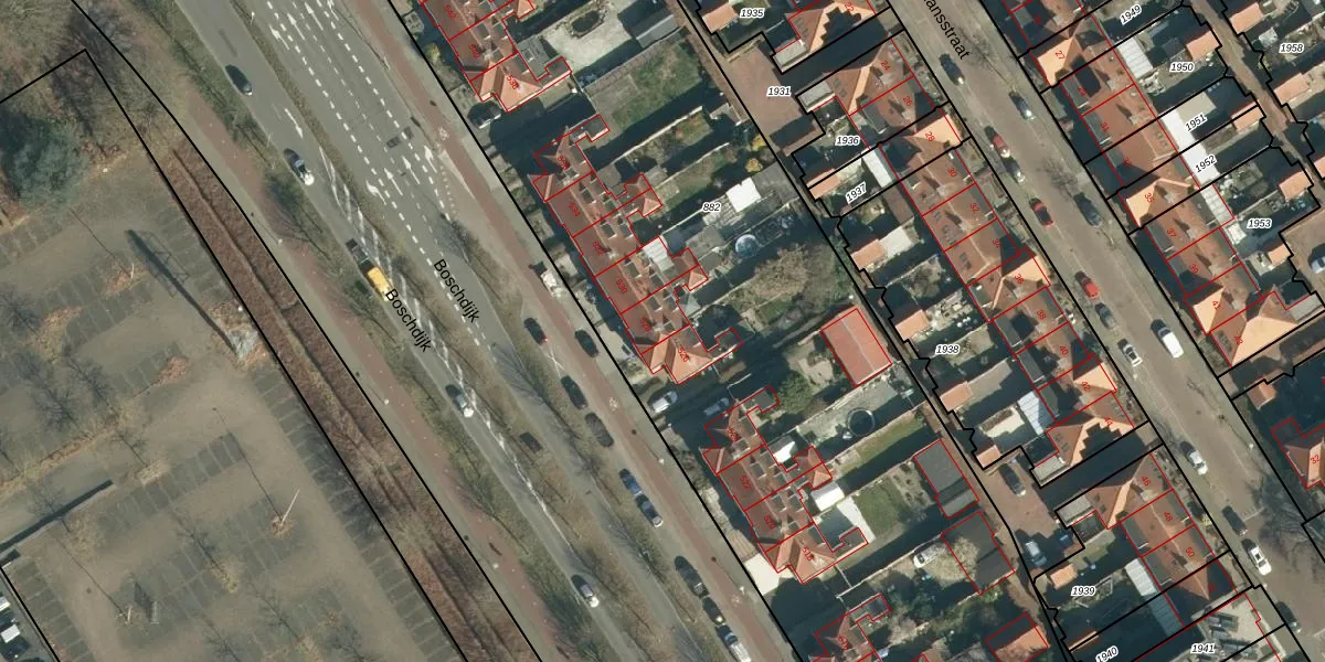 Het perceel waarop Boschdijk 528 staat heeft een oppervlakte van 7469 m². Dit is een zeer groot perceel. De perceeloppervlakte wordt geregistreerd door het Kadaster. Gedetailleerde informatie over de maten van dit perceel kunt u vinden in het rapport Kadastrale kaart met maatvoering van Boschdijk 528.