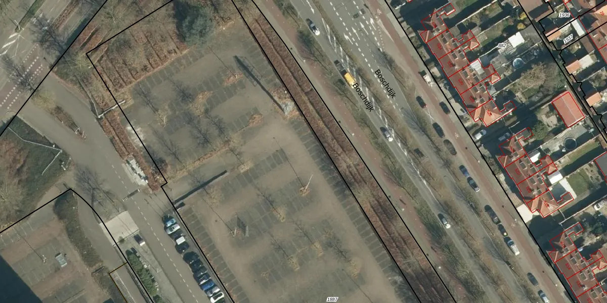 Het perceel waarop Boschdijk 587-E staat heeft een oppervlakte van 1,3 ha. Dit is een zeer groot perceel. De perceeloppervlakte wordt geregistreerd door het Kadaster. Gedetailleerde informatie over de maten van dit perceel kunt u vinden in het rapport Kadastrale kaart met maatvoering van Boschdijk 587-E.