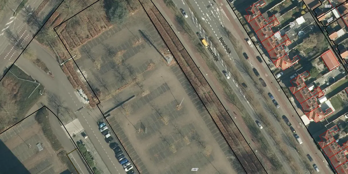 Het perceel waarop Boschdijk 593-E staat heeft een oppervlakte van 1,3 ha. Dit is een zeer groot perceel. De perceeloppervlakte wordt geregistreerd door het Kadaster. Gedetailleerde informatie over de maten van dit perceel kunt u vinden in het rapport Kadastrale kaart met maatvoering van Boschdijk 593-E.