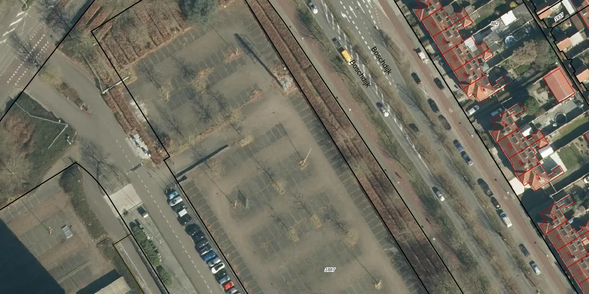 Het perceel waarop Boschdijk 599-D staat heeft een oppervlakte van 1,3 ha. Dit is een zeer groot perceel. De perceeloppervlakte wordt geregistreerd door het Kadaster. Gedetailleerde informatie over de maten van dit perceel kunt u vinden in het rapport Kadastrale kaart met maatvoering van Boschdijk 599-D.