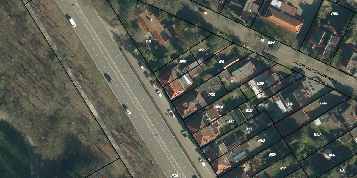 Gebruik de zoekbalk of klik op een perceel voor informatie over de adressen binnen dit perceel.