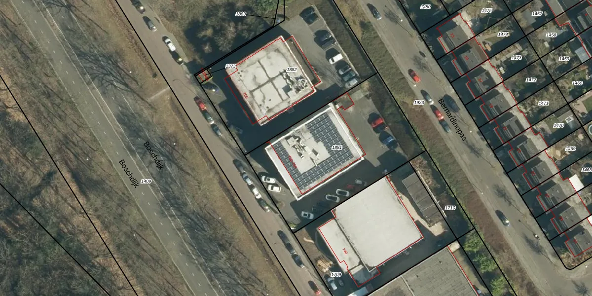 Het perceel waarop Boschdijk 764 staat heeft een oppervlakte van 1643 m². Dit is een zeer groot perceel. De perceeloppervlakte wordt geregistreerd door het Kadaster. Gedetailleerde informatie over de maten van dit perceel kunt u vinden in het rapport Kadastrale kaart met maatvoering van Boschdijk 764.