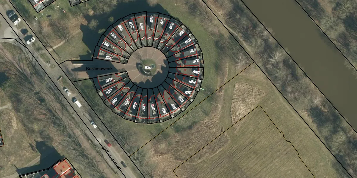 Bosleeuwerik 32 is gelegen op kadastraal perceel STR03F1737. Deze kadastrale aanduiding is uniek en wordt gebruikt door het Kadaster om eigendomsrechten en andere zakelijke rechten vast te leggen. Het perceel maakt onderdeel uit van de kadastrale gemeente Strijp.