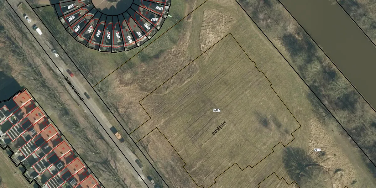 Het perceel waarop Boslijster 12 staat heeft een oppervlakte van 3878 m². Dit is een zeer groot perceel. De perceeloppervlakte wordt geregistreerd door het Kadaster. Gedetailleerde informatie over de maten van dit perceel kunt u vinden in het rapport Kadastrale kaart met maatvoering van Boslijster 12.