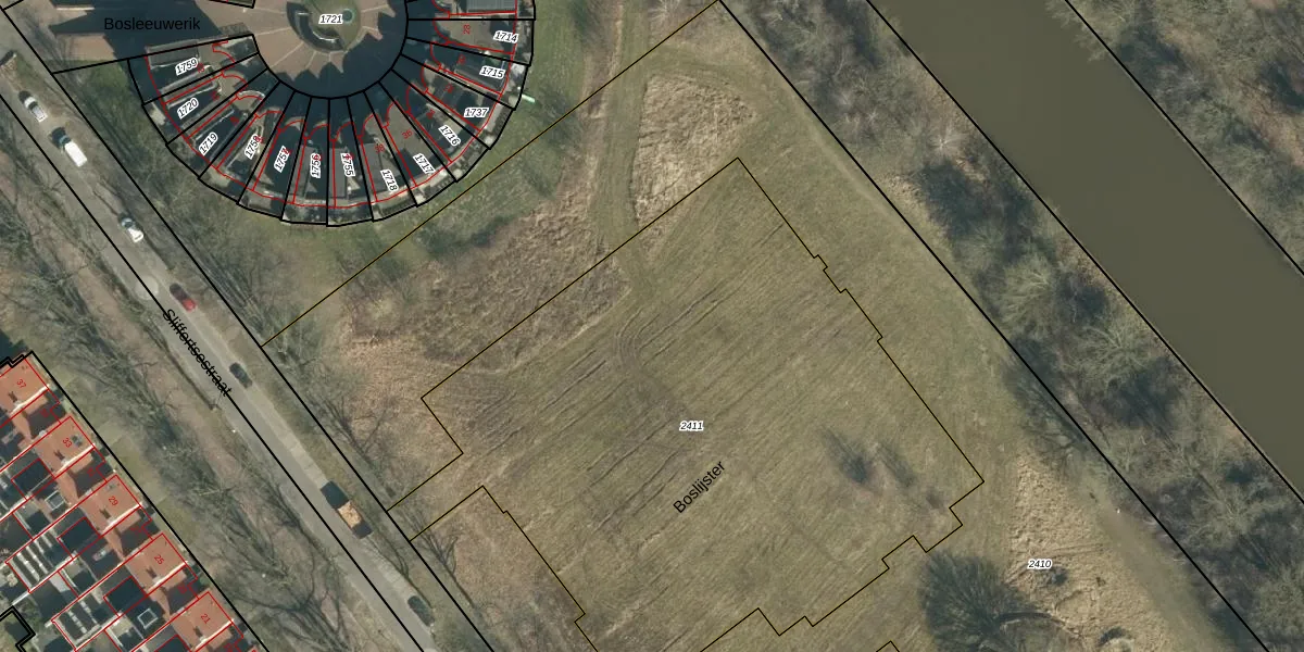 Boslijster 14 is gelegen op kadastraal perceel STR03F2411. Deze kadastrale aanduiding is uniek en wordt gebruikt door het Kadaster om eigendomsrechten en andere zakelijke rechten vast te leggen. Het perceel maakt onderdeel uit van de kadastrale gemeente Strijp.
