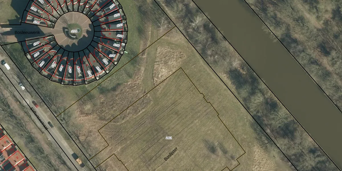 Het perceel waarop Boslijster 17 staat heeft een oppervlakte van 3878 m². Dit is een zeer groot perceel. De perceeloppervlakte wordt geregistreerd door het Kadaster. Gedetailleerde informatie over de maten van dit perceel kunt u vinden in het rapport Kadastrale kaart met maatvoering van Boslijster 17.