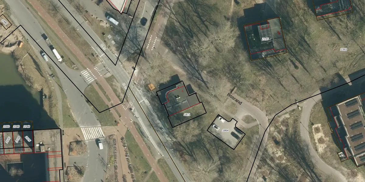 Gebruik de zoekbalk of klik op een perceel voor informatie over de adressen binnen dit perceel.