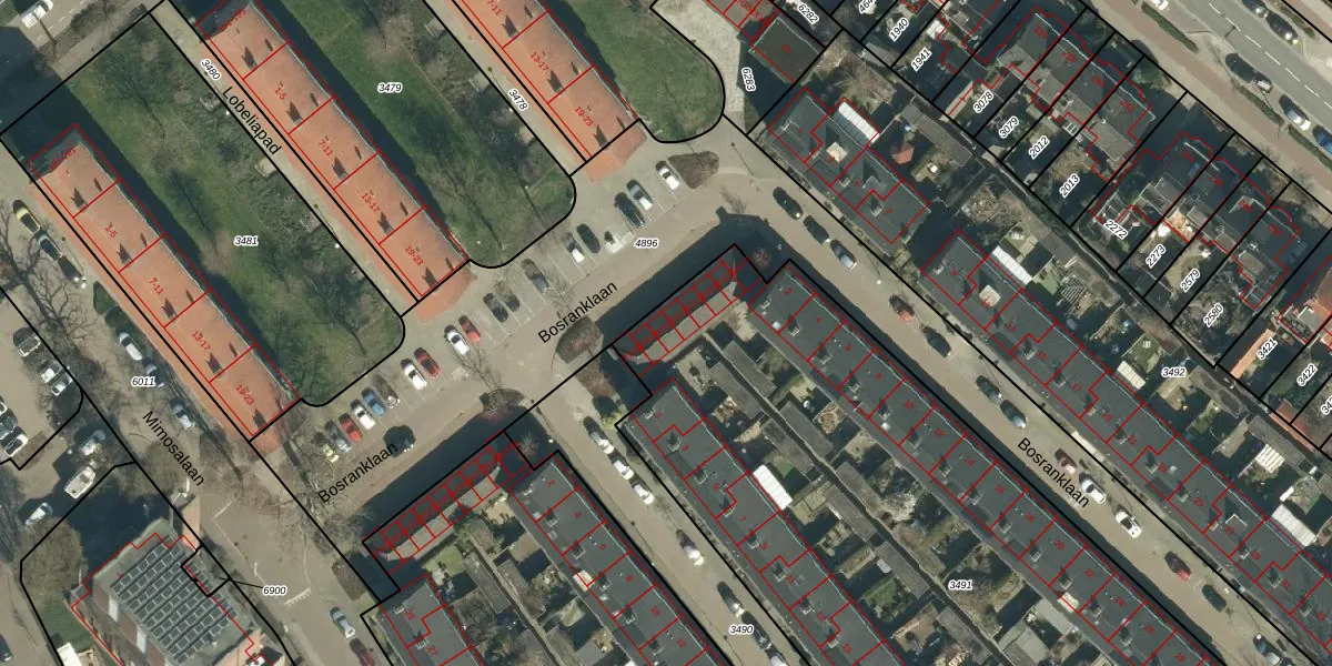 Het perceel waarop Bosranklaan 2-G12 staat heeft een oppervlakte van 5045 m². Dit is een zeer groot perceel. De perceeloppervlakte wordt geregistreerd door het Kadaster. Gedetailleerde informatie over de maten van dit perceel kunt u vinden in het rapport Kadastrale kaart met maatvoering van Bosranklaan 2-G12.