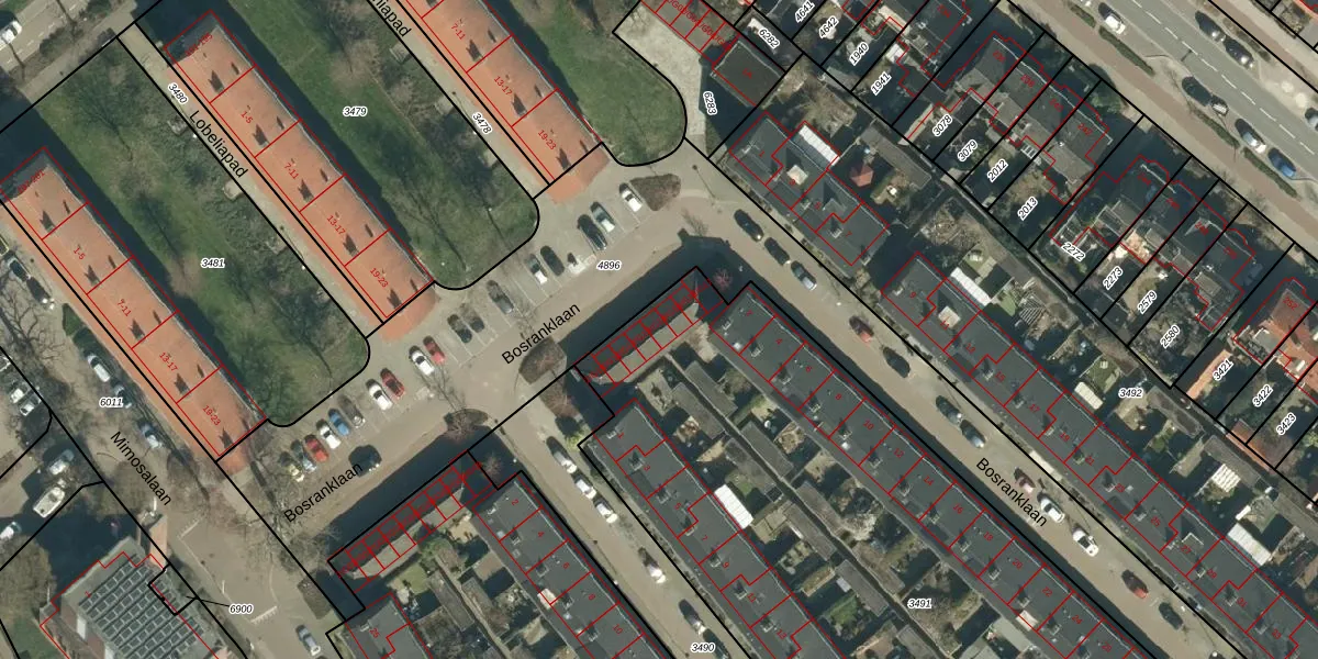 Het perceel waarop Bosranklaan 2-G14 staat heeft een oppervlakte van 5045 m². Dit is een zeer groot perceel. De perceeloppervlakte wordt geregistreerd door het Kadaster. Gedetailleerde informatie over de maten van dit perceel kunt u vinden in het rapport Kadastrale kaart met maatvoering van Bosranklaan 2-G14.