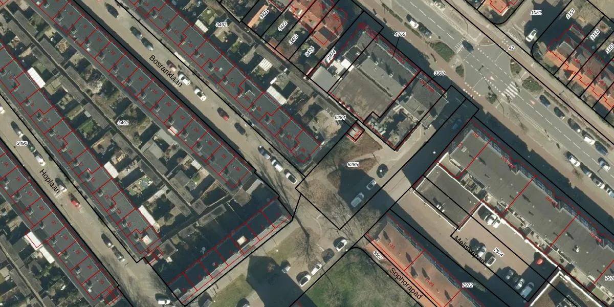 Het perceel waarop Bosranklaan 35 staat heeft een oppervlakte van 2885 m². Dit is een zeer groot perceel. De perceeloppervlakte wordt geregistreerd door het Kadaster. Gedetailleerde informatie over de maten van dit perceel kunt u vinden in het rapport Kadastrale kaart met maatvoering van Bosranklaan 35.