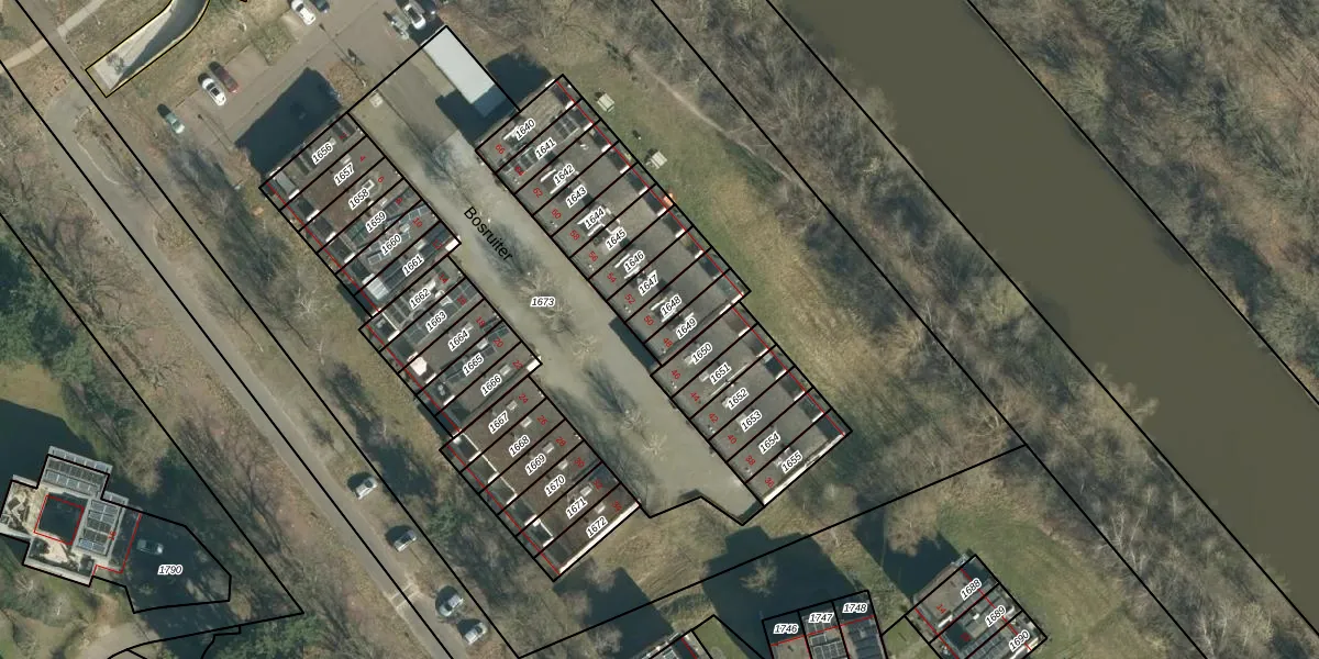 Het perceel waarop Bosruiter 50 staat heeft een oppervlakte van 75 m². Dit is een klein perceel. De perceeloppervlakte wordt geregistreerd door het Kadaster. Gedetailleerde informatie over de maten van dit perceel kunt u vinden in het rapport Kadastrale kaart met maatvoering van Bosruiter 50.