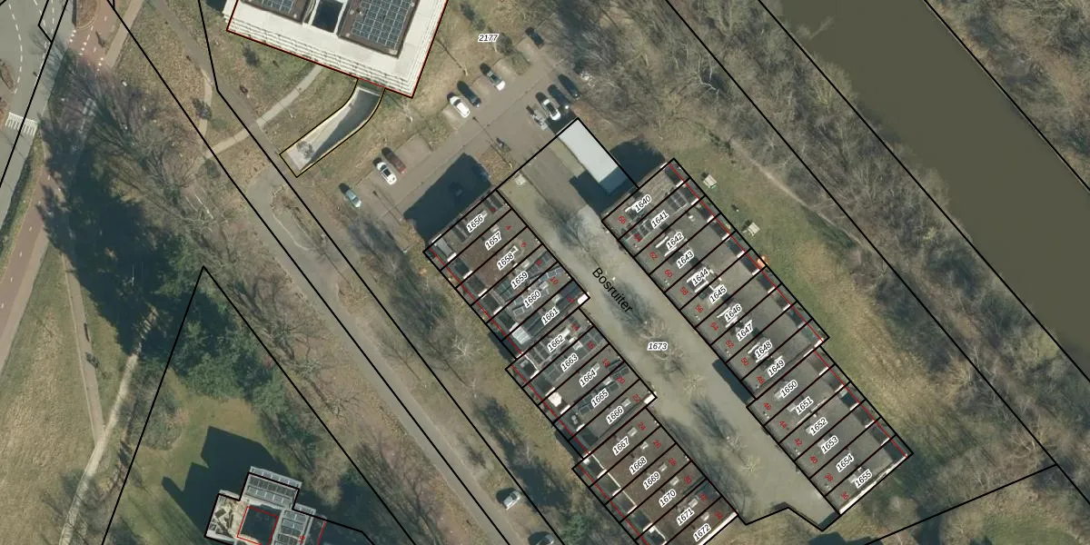 Het perceel waarop Bosruiter 8 staat heeft een oppervlakte van 75 m². Dit is een klein perceel. De perceeloppervlakte wordt geregistreerd door het Kadaster. Gedetailleerde informatie over de maten van dit perceel kunt u vinden in het rapport Kadastrale kaart met maatvoering van Bosruiter 8.