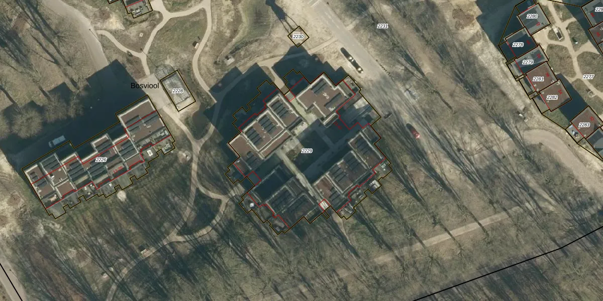 Het perceel waarop Bosuil 21 staat heeft een oppervlakte van 2012 m². Dit is een zeer groot perceel. De perceeloppervlakte wordt geregistreerd door het Kadaster. Gedetailleerde informatie over de maten van dit perceel kunt u vinden in het rapport Kadastrale kaart met maatvoering van Bosuil 21.